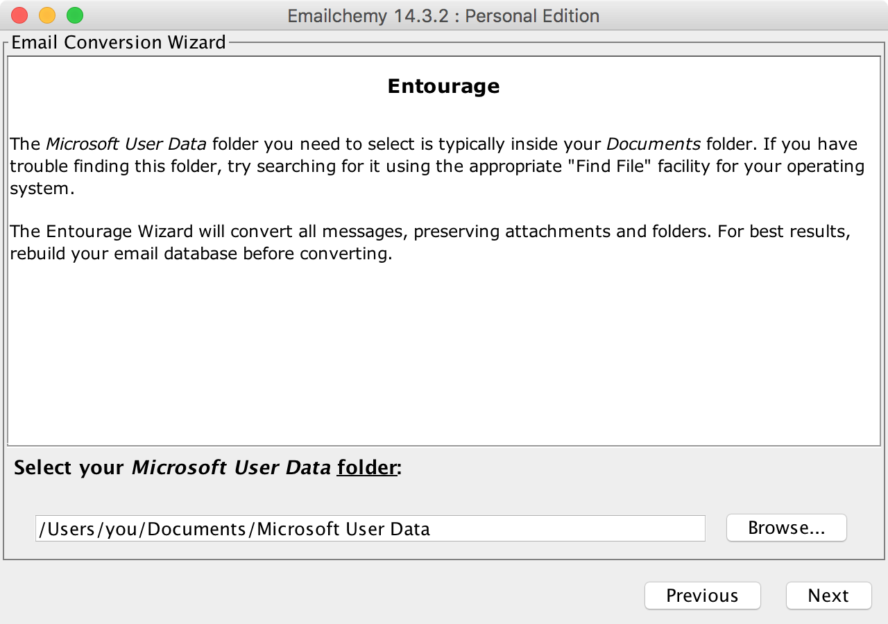 Even though Entourage will no longer run, your data will still be there in your Microsoft User Data folder. Emailchemy knows how to read this data directly, without you needing to run Entourage ever again.